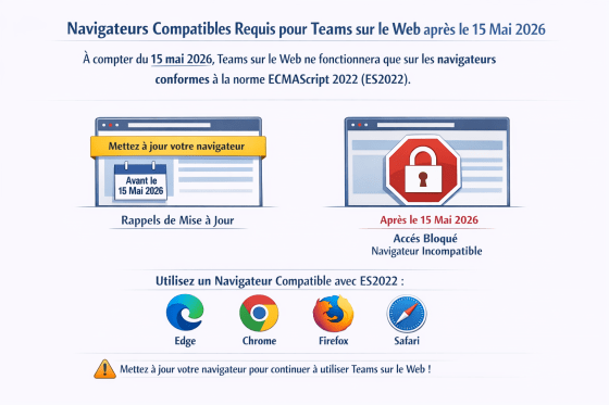 Pour continuer à utiliser Teams sur le Web après le 15 mai 2026, tous les utilisateurs devront impérativement utiliser une…