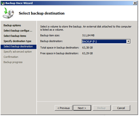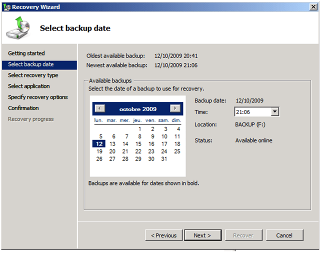 Il faut Ensuite lancer l’outil de sauvegarde de Windows 2008 mais au lieu de restaurer à l’emplacement d’origine,