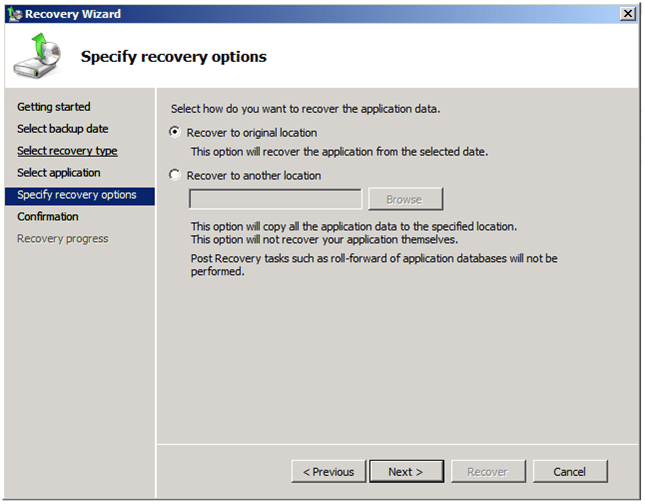 - Restauration des données à un emplacement différent de l’emplacement d’origine