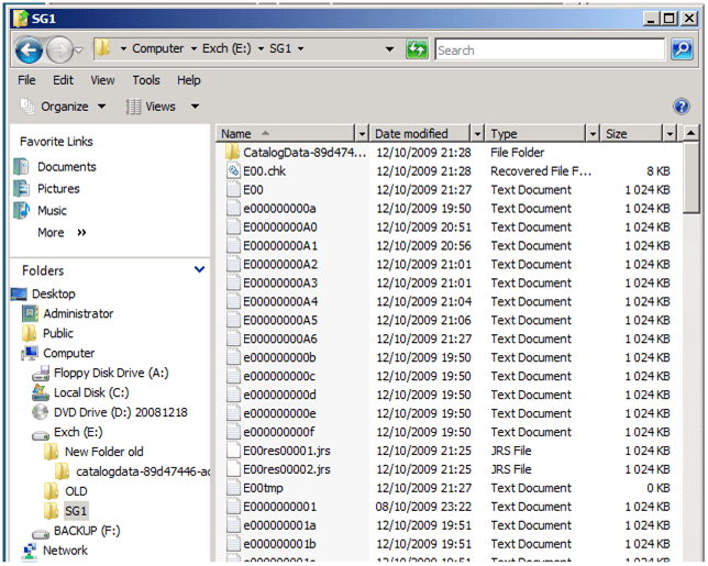 Il ne reste plus aucun fichier exchange suite à la suppression de la base par un admin Exchange.