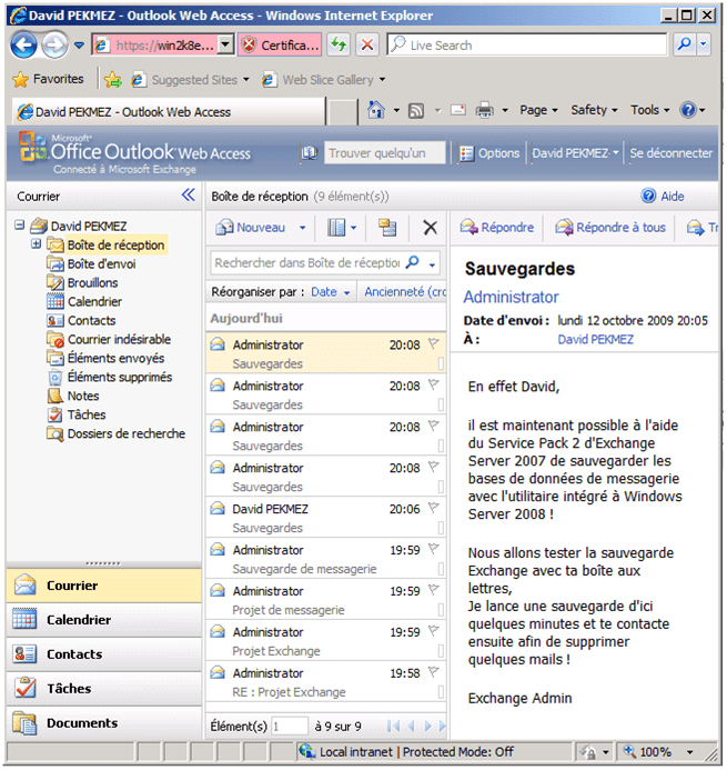 La sauvegarde d’Exchange Server 2007 SP2