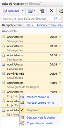 Je vais pour cela supprimer quelques mails de ma boîte aux lettres