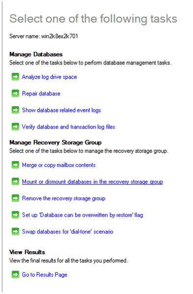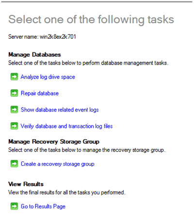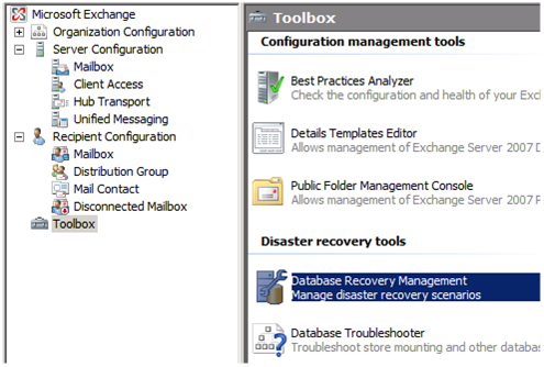 Dans la console Exchange, naviguez dans les outils et choisir « Database Recover Management »