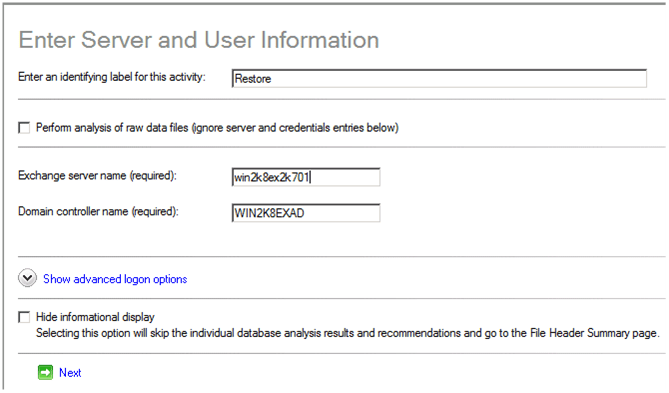 Entrer le nom du serveur Exchange et cliquer sur « Next »