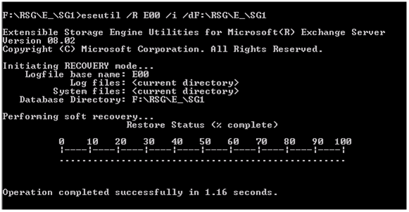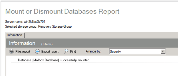 Une fois la base dans cet état, vous pouvez la monter dans le recovery storage group