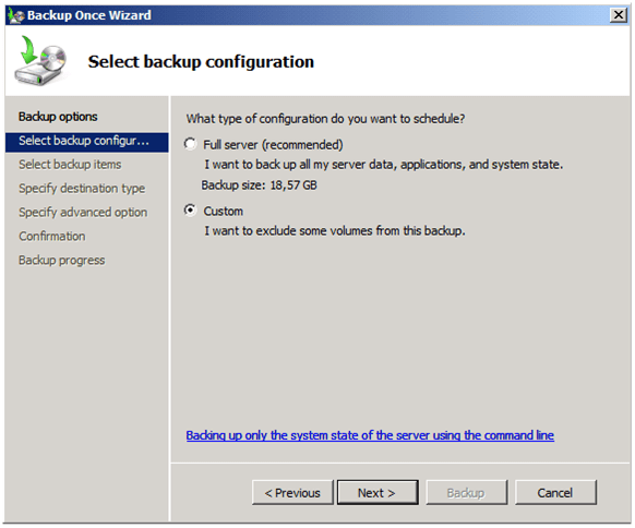 Choisir « Custom » afin de sélectionner les éléments à sauvegarder