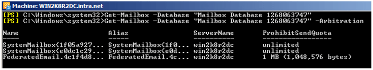 Get-Mailbox -Database « Mailbox Database 1268063747 » -Arbitration | New-MoveRequest -TargetDatabase DB2