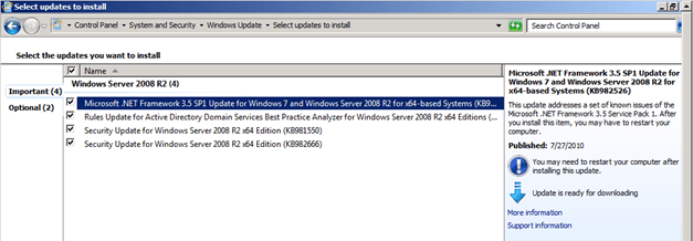 Les commandes passées après une installation toute neuve de Windows 2008 R2 sont les suivantes. This are the commands after the fresh installation