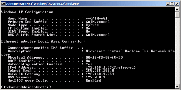 netsh interface IPV4 set dnsserver « Local Area Connection » Static 192.168.1.99 primary