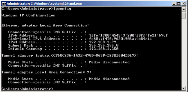 netsh interface Ipv4 set address name= »Local Area Connection » source= »Static » address=192.168.1.99 mask=255.255.255.0 gateway=192.168.1.250 gw=1