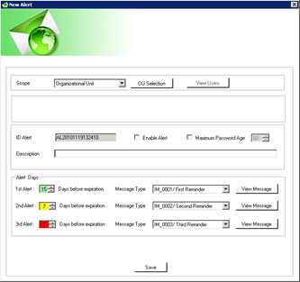 The scope refers to the users targeted by the alert. There are three scopes : Domain, Group or Organizational Unit.