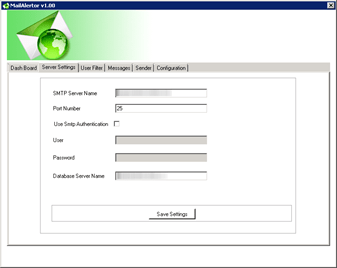 The first time you run the application, you have to enter the location of the SQL server on which you installed the MailAlertorDB. See installation chapter