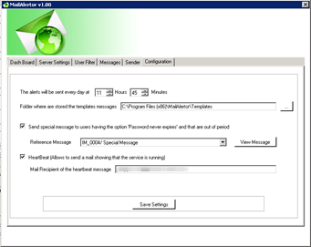Enter the path for the folder where the template messages are stored. By default they are put in the folder named ‘template’ during the installation. At installation, the setup program creates four messages. Three messages for standard alerts and a special message, for users with ‘Password never expires’ option.