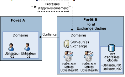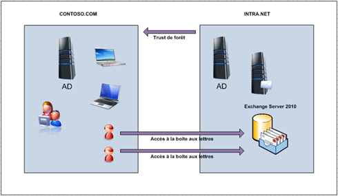 Une forêt de ressource est une forêt différente de la forêt ou se trouvent les comptes utilisateurs, et dans laquelle sont installées toutes les ressources liées à Exchange Server (Extensions de schéma, Serveurs, Banques d’informations, Boîtes aux lettres etc …)