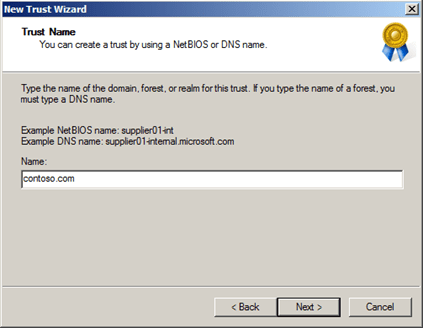 Cliquez sur « New Trust » afin de lancer l’assistant de création de relation d’approbation