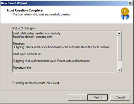 La relation d’approbation est maintenant créée dans la forêt de ressource
