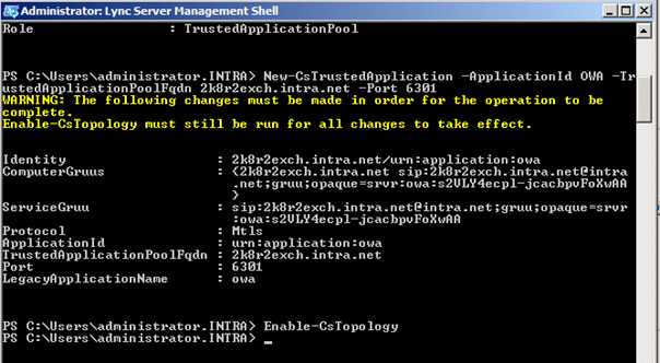 New-CsTrustedApplication –ApplicationId OWA –TrustedApplicationPoolFqdn NOM DE L’APPLCATION POOL –Port PORT NON UTILISE