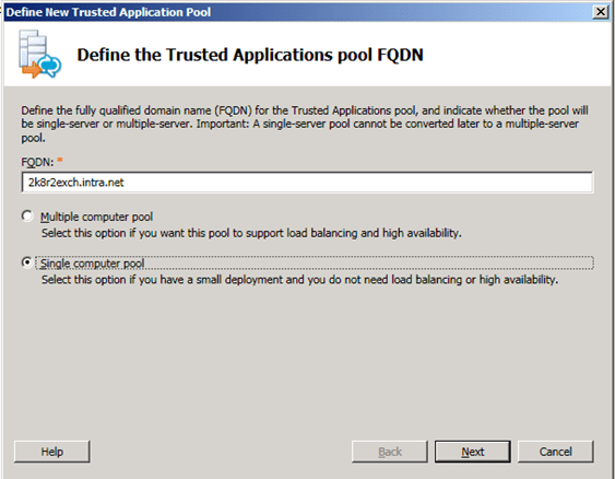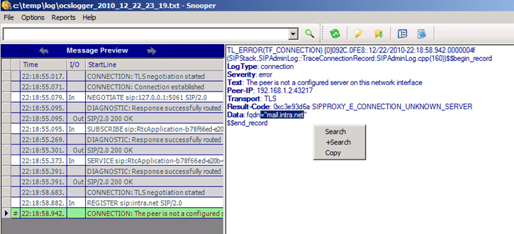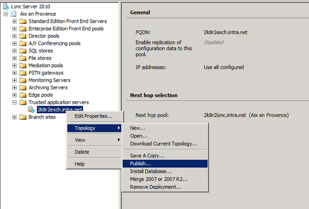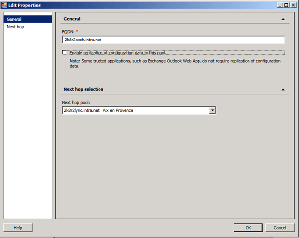 Dans mon cas le FQDN étaient illogique au lieu du nom du Serveur j’avais « mail.intra.net » et une erreur de type SIPPROXY_E_CONNECTION_UNKNOWN_SERVER
