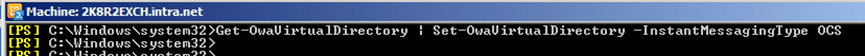 Get-OwaVirtualDirectory -server SERVERNAME | Set-OwaVirtualDirectory –InstantMessagingType Ocs