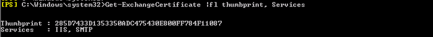 Get-ExcahngeCertificate |fl thumbprint, Services