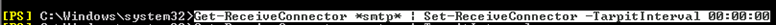 Set-ReceiveConnector « NomDuConnecteur » -TarpitInterval 00 :00 :00