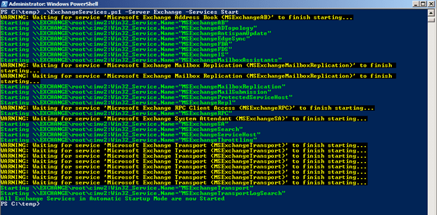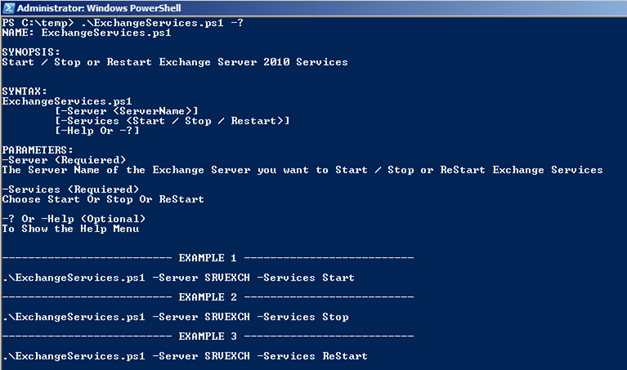Script allows you to Start, Stop or Restart Exchange Server 2010 Services (only theses in Automatic startup mode)