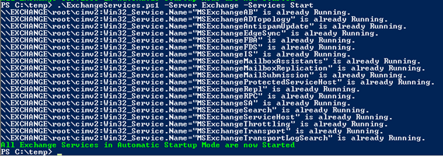 Write-Host -ForegroundColor Green "All Exchange Services in Automatic Startup Mode are now Started"