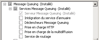 Résolution : Vérifiez que Message Queuing est installé avec l’intégration Active Directory et qu’il fonctionne correctement. Si ce n’est pas le cas, réinstallez le service Message Queuing avec l’intégration Active Directory, puis redémarrez Message Queuing.