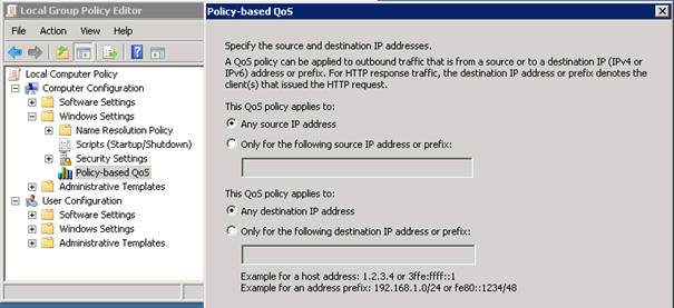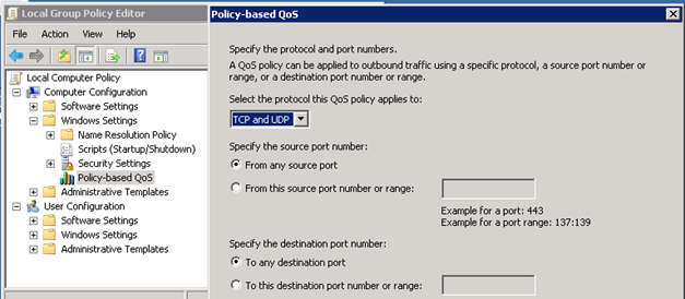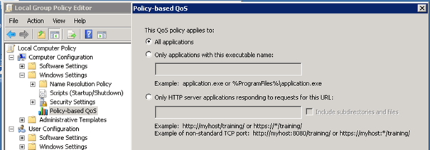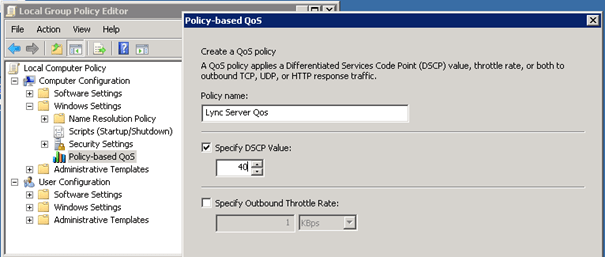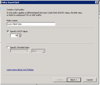 Le produit Lync 2010 peut utiliser les options de QoS en marquant les paquets avec les fonctionnalités DiffServ. Si l’on veut utiliser la priorisation de paquets il faut utiliser les GPO Windows afin de spécifier les ports pour chaque type de communication car par défaut le marquage des paquets est désactivé. Une fois activé le marquage des paquets sera réalisé par le service Qos Packet Scheduler si ce dernier est installer sur votre configuration réseau.