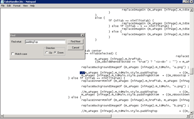 Ouvrir le fichier (avec un editeur de text) « C:\Program Files\Microsoft Forefront Threat Management Gateway\UI_HTMLs\TabsHandler\TabsHandler.htc »