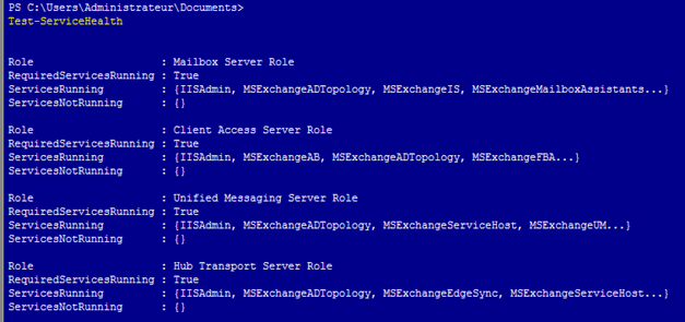 Je peux faire un Test-ServiceHealth pour avoir un aperçu de l’état des rôles Exchange de ce serveur