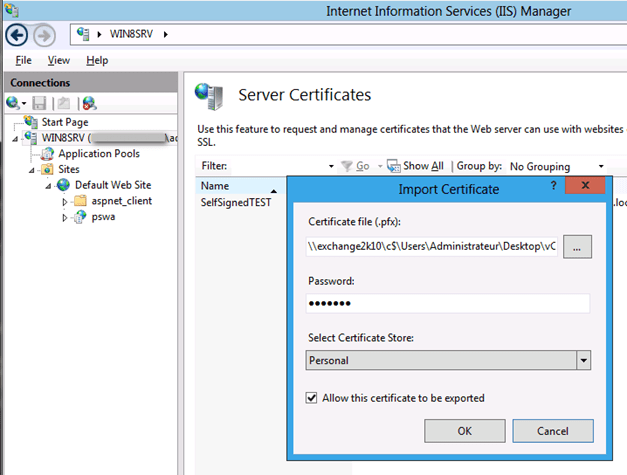 Il faut maintenant importer un certificat SSL ou en créer un nouveau (SelfSigned si besoin)