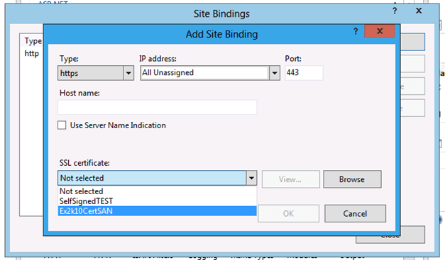 Puis « binder » le certificat sur le Default Web Site