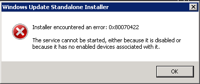 A l’installation nous avons rencontré le problème suivant : Installer Encountered an error : 0X80070422