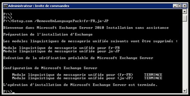 Exemple : Setup.com /RemoveUmLanguagePack:fr-FR,ja-JP