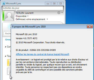 Passons maintenant à la dernière version du client Lync CU3