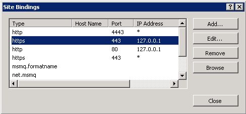 Parameter name: item. —> System.ArgumentException: This collection already contains an address with scheme http. There can be at most one address per scheme in this collection.