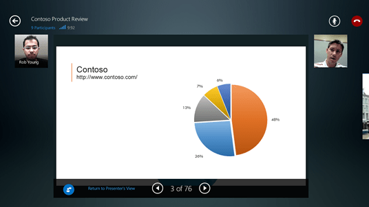 Parcourez les éléments de présentation Powerpoint : Il est désormais possible de prendre le contrôle de la présentation qu’une personne aurait commencée à présenter.