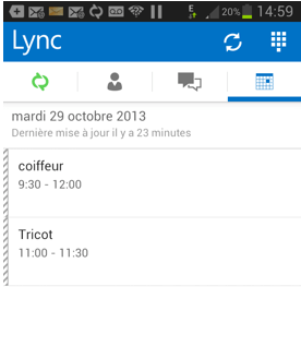 and the worse is that, when I use the same Account on Android galaxy S3 GT-I9300 Version 4.1.2 with Lync Phone edition meetings are well displaying.
