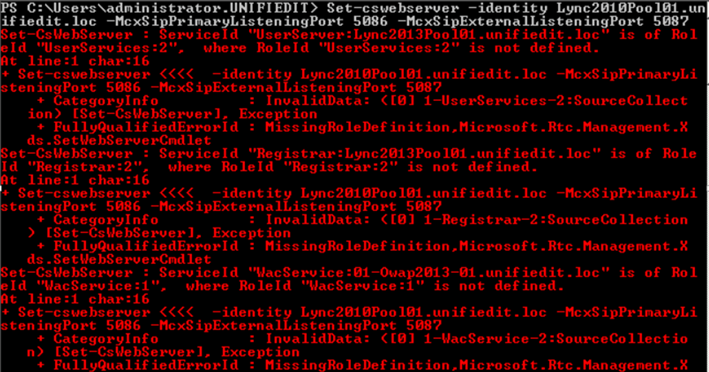 Set-cswebserver –identity –McxSipPrimaryListeningPort 5086 –McxSipExternalListeningPort 5087