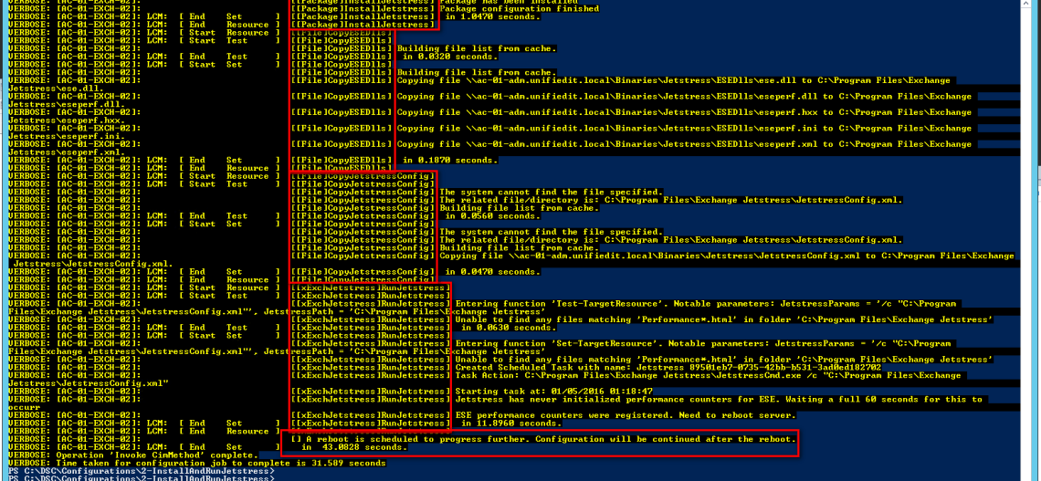 Nous allons automatiser le déploiement de JetStress avec le Module DSC xExchange et plus particulièrement les ressources : xExchJetstress & xExchJetstressCleanup
