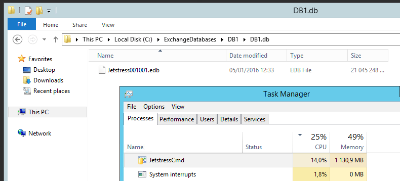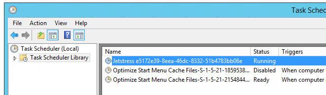 Après le reboot (automatique) JetStress va se lancer (à travers une tache planifiée)