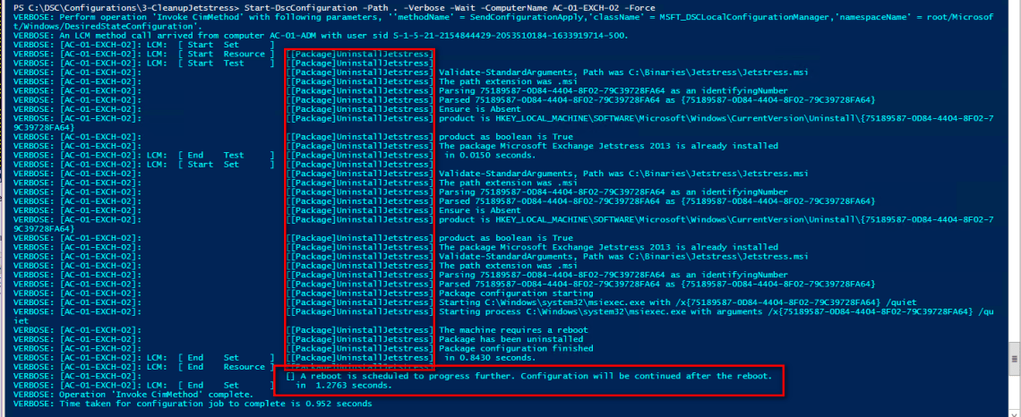 Start-DscConfiguration -Path . -Verbose -Wait -ComputerName AC-01-EXCH-02