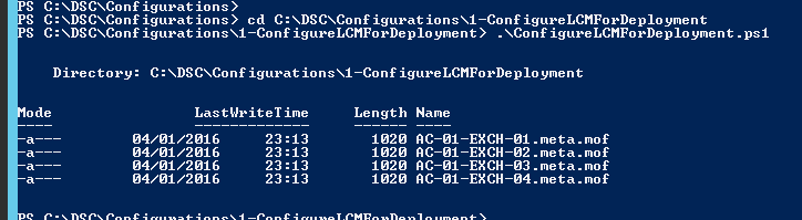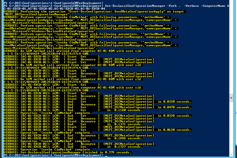 Set-DscLocalConfigurationManager -Path . -Verbose -ComputerName AC-01-EXCH-01,AC-01-EXCH-02,AC-01-EXCH-03,AC-01-EXCH-04
