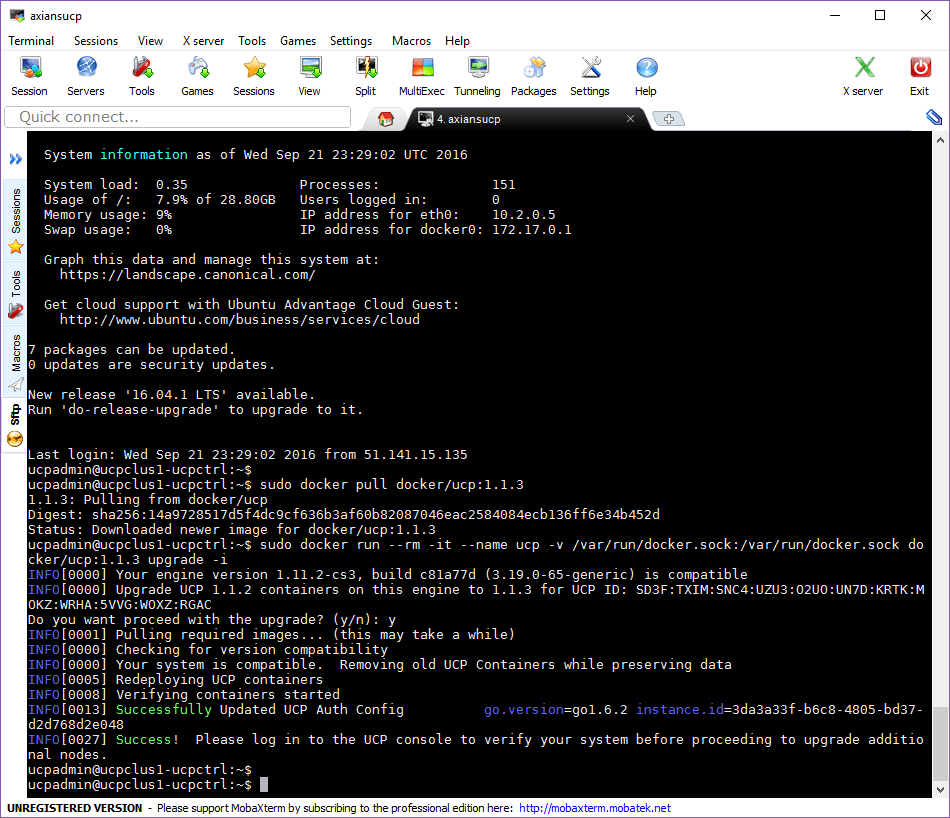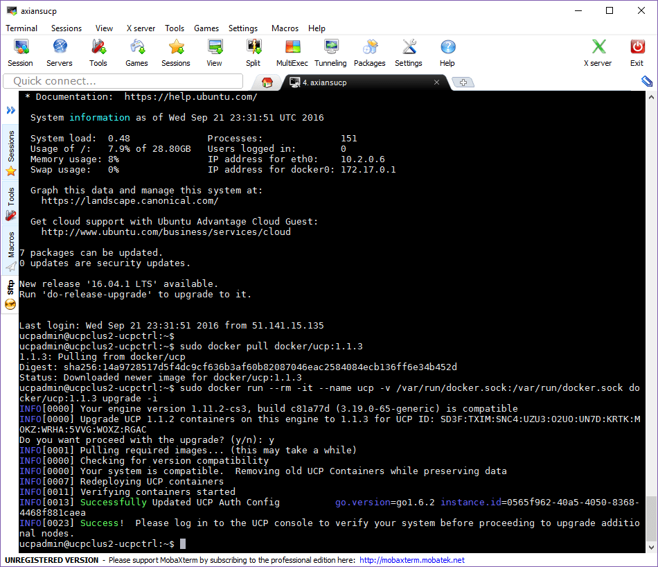 docker/ucp:1.1.3 upgrade -i
