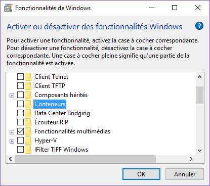 – Linux Containers (s’appuyant sur une VM Linux dans Hyper-V) disponibles depuis DockerCon 2016 en Stable & Beta avec Docker for Windows (https://docs.docker.com/docker-for-windows/)