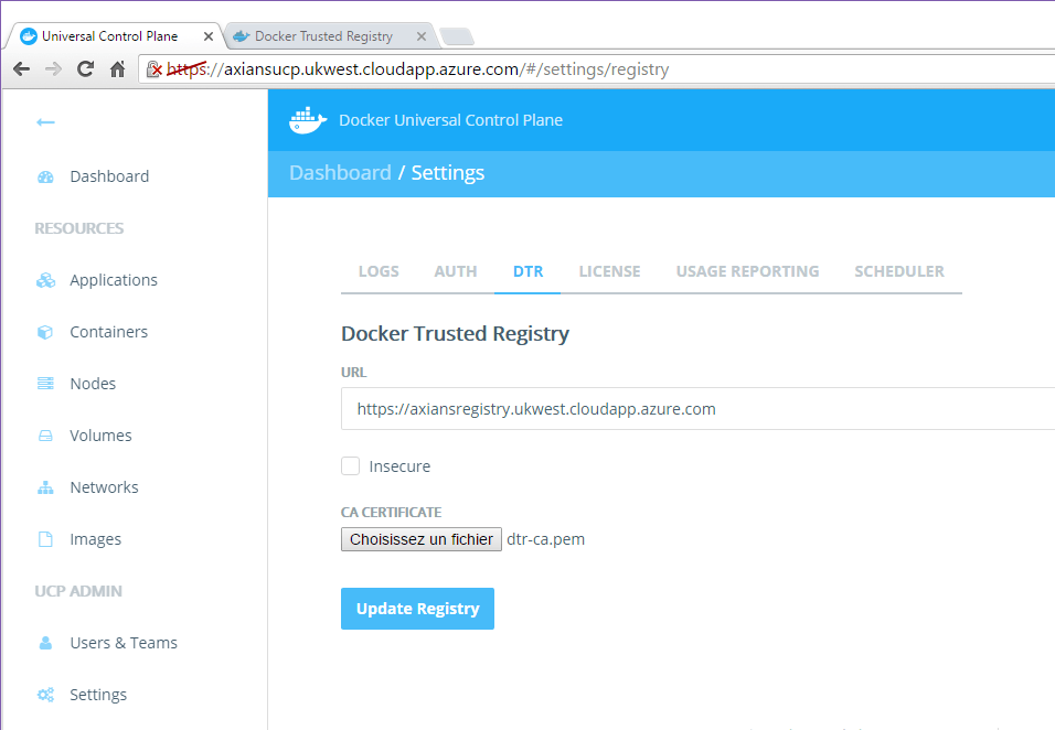 Nous allons maintenant mettre à jour le portail DTR avec le certificat de l’autorité de certificat de la partie UCP Controller