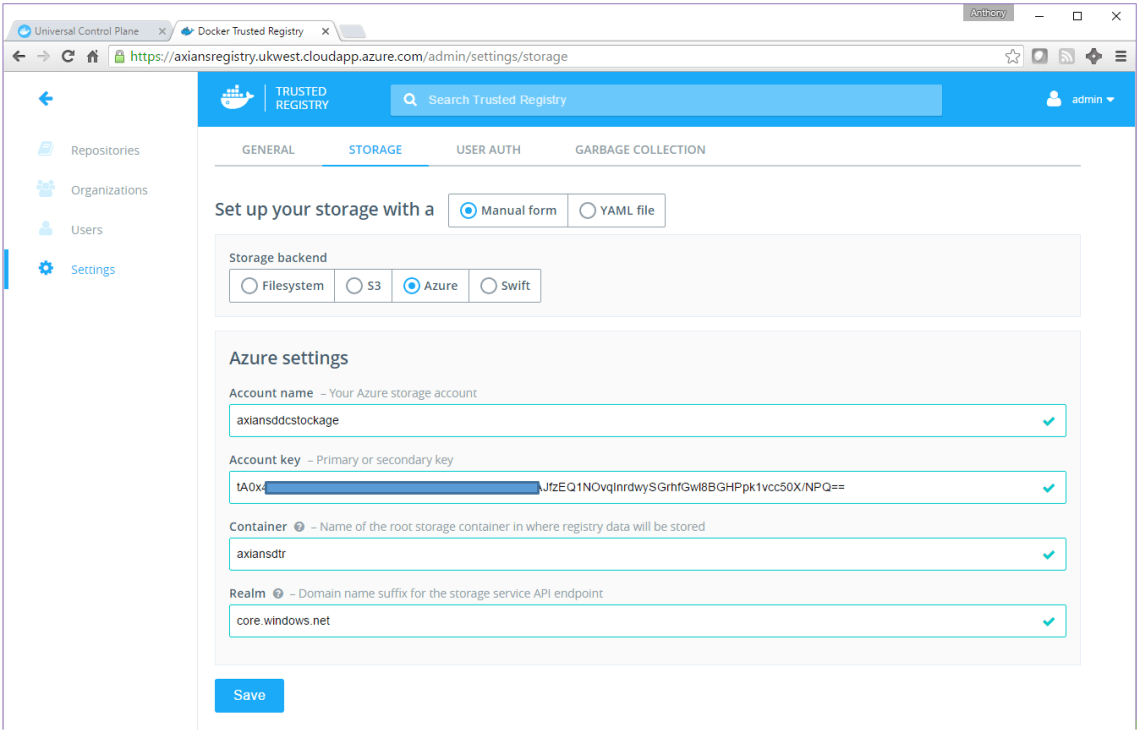 ssh ucpadmin@axiansdockerengine.ukwest.cloudapp.azure.com -p 2201