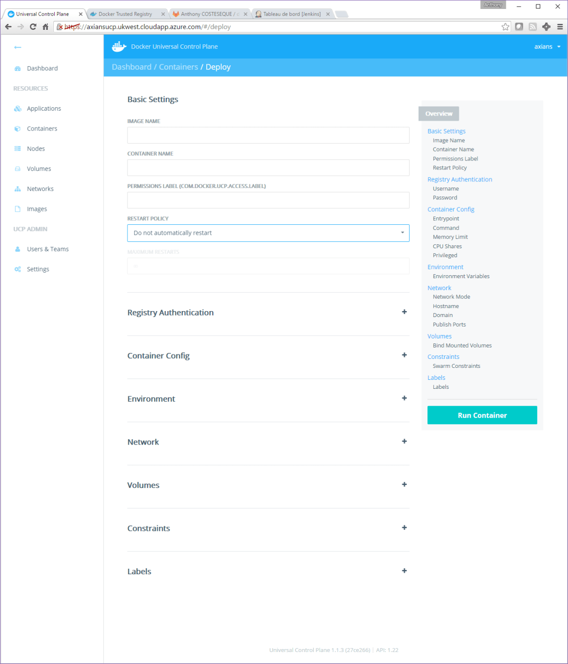 Je me log sur ma registry Docker (Docker Datacenter DTR)