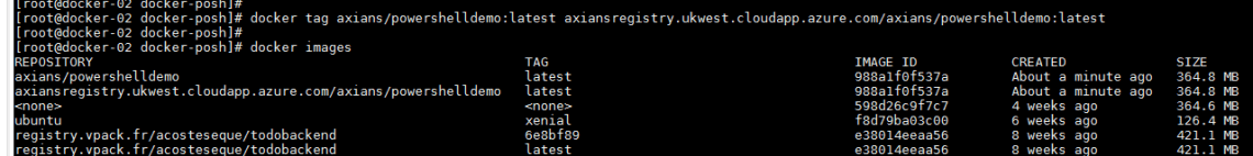docker tag axians/powershelldemo:latest axiansregistry.ukwest.cloudapp.azure.com/axians/powershelldemo:latest